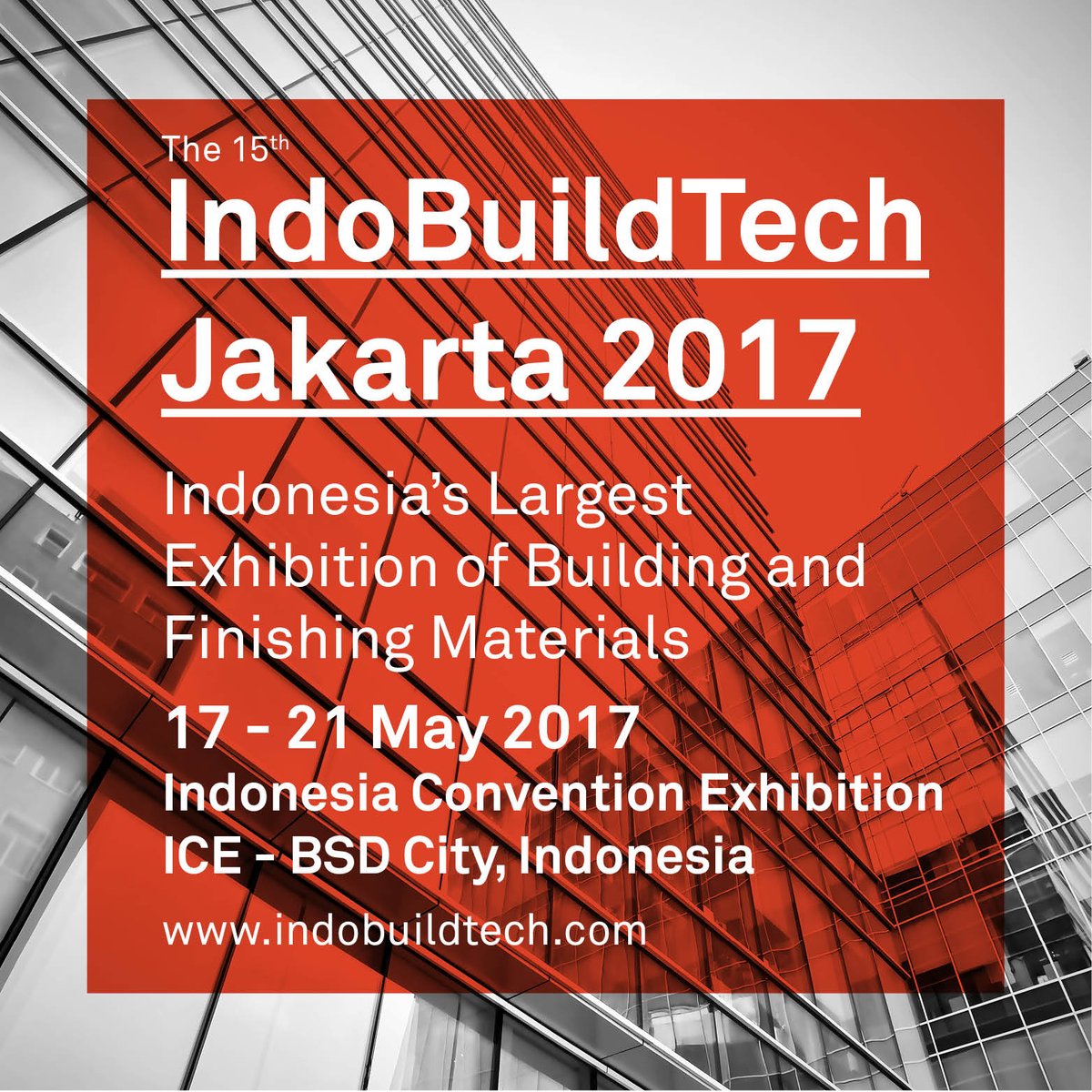Memasuki tahun ke-15, Debindo-ITE kembali menyelenggarakan Indobuildtech Expo Jakarta 2017 pada 17 – 21 May 2017 di Indonesia Convention Exhibition (ICE, BSD City) sebagai pameran teknologi dan bahan bangunan terbesar dan terlengkap di Indonesia.